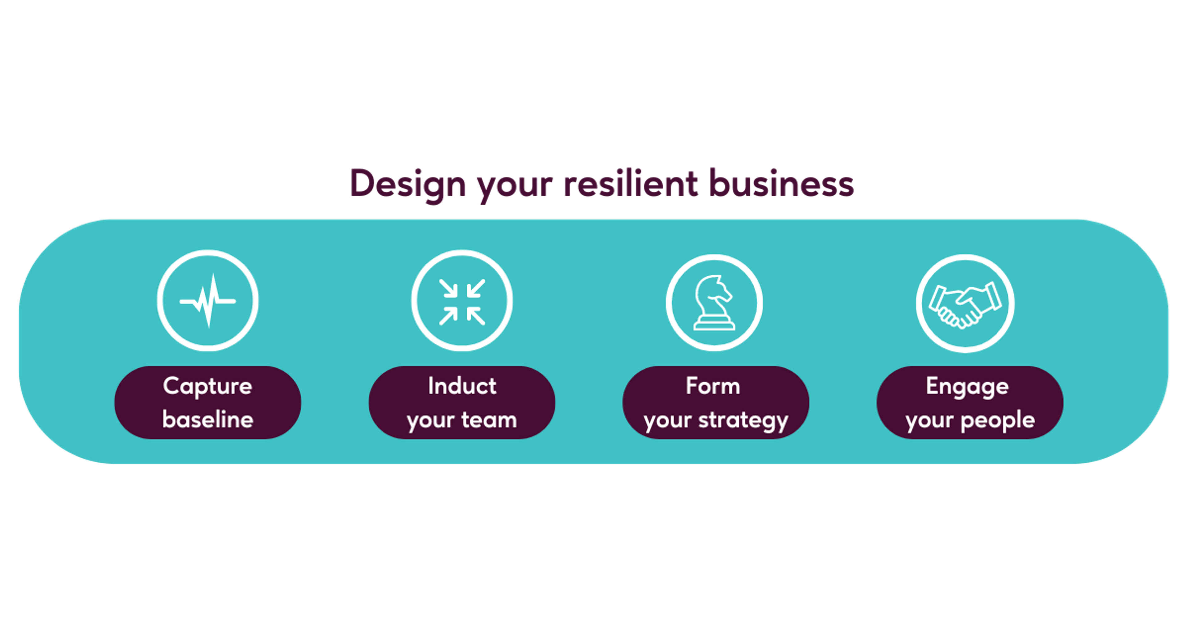 The process begins with your Resilient Business Coach. They are your guide through the journey and remain by your side to discover, diagnose and challenge you and your business so you can take it from where it is now, to where you want it to be. They bring to the table a wealth of experience and share their knowledge and expertise on how to create a sustainable and resilient business.