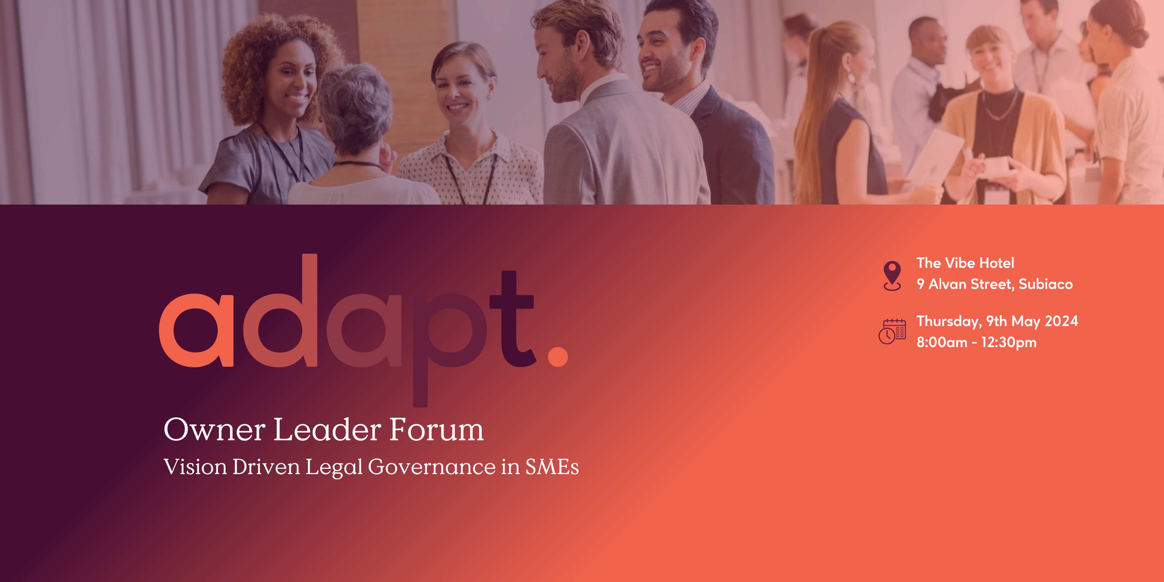 We invite you to join us at the upcoming adapt Owner-Leader Forum, where we will be hearing from Patrick Corr on the topic of “Vision Driven Legal Governance in SMEs”.