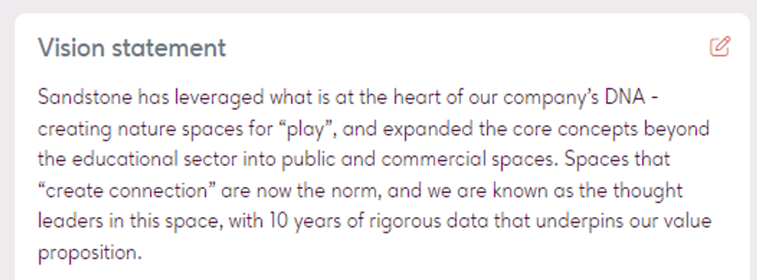 This pathway is where the owners and leaders of the business craft a vision statement for the business.