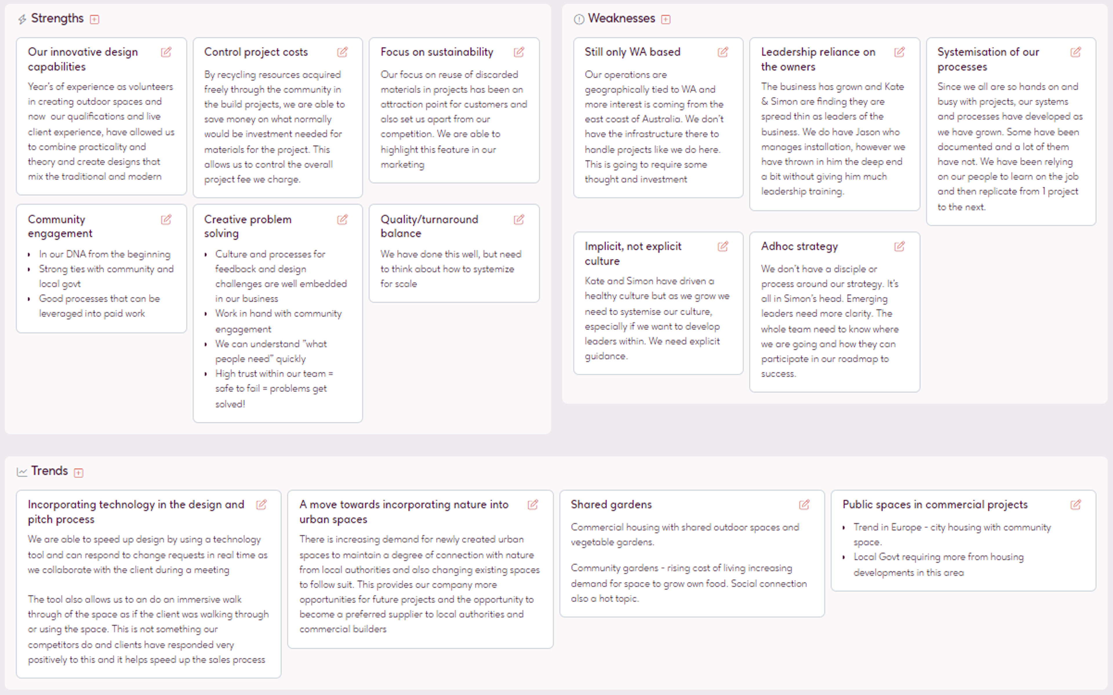 Weaknesses are factors that may put your business at a disadvantage to others - and are things your business doesn’t do well or needs to improve.