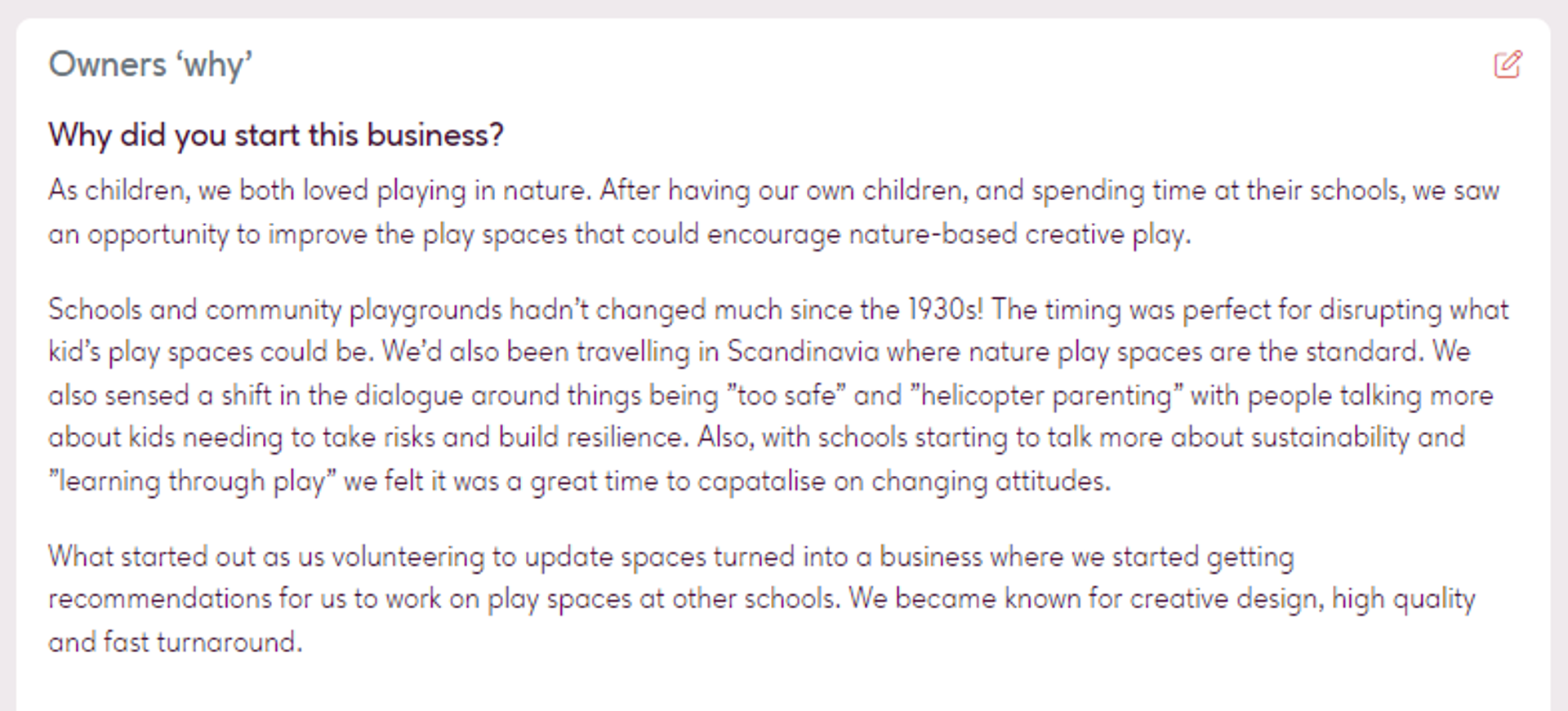 - Why did you start this business